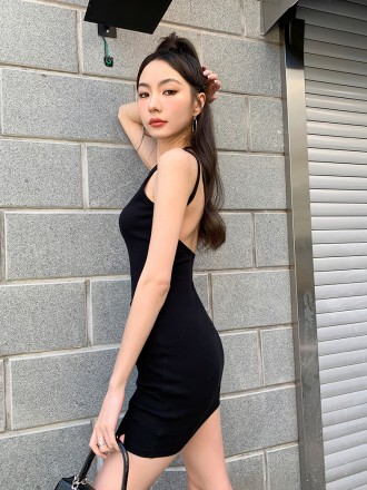 Slim sleeveless vest dress Black hip skirt female summer new thin suspender dress