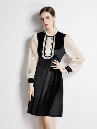 Dress Wholesale French Palace Golden Velvet Women's Spring New Style Temperament Long Sleeve Wooden ...