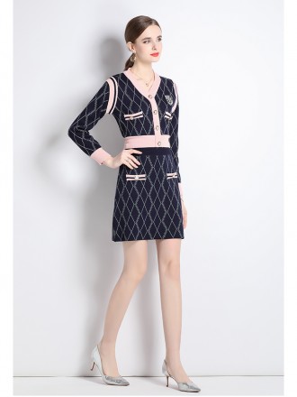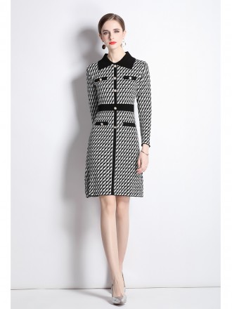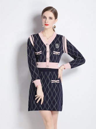 High -end knitted dress autumn and winter new ladies are thin French letters small incense skirt