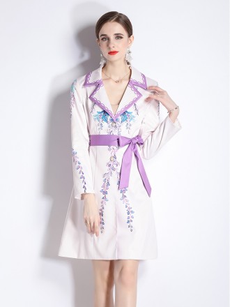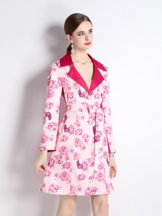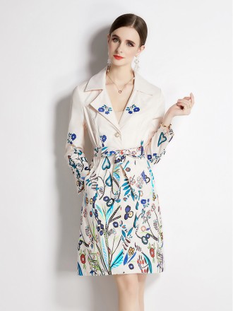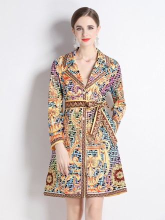 Fashion printed suit collar jacket female spring and autumn temperament waist thinly buckle medium l...