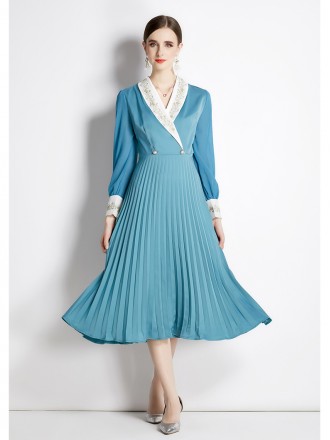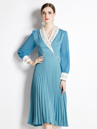 Dress Wholesale The new long -sleeved embroidered dress woman is thin and slim -fitted V -neck suit ...