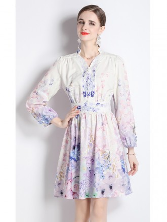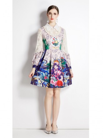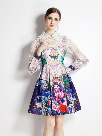 Dress Wholesale Spring and autumn new product lace stitching design shirt neck skirt Ruili art paint...