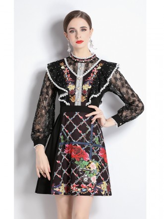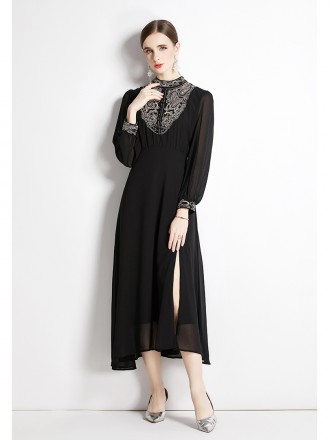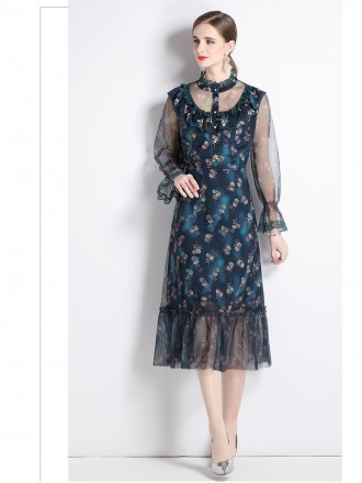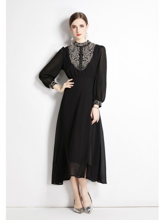 Dress Wholesale The new exquisite embroidery small stand -up collar sedimentation sleeve long skirt ...