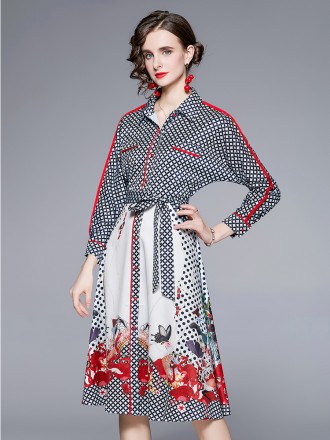 Dress Wholesale Spring and Autumn Long Sleeves New Ins Style Fashion Print Dress Women's Personalize...