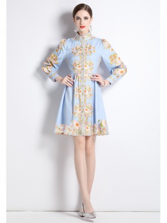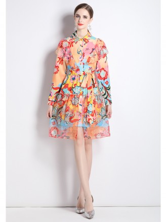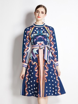 Dress Wholesale High end personalized and fashionable printed standing neck dress with waistband and...