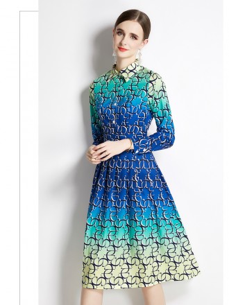 Dress Wholesale Star -style female fashion printed high -level sensory body is thin, elegant Ruili d...