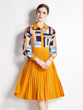 SUITS SEPARATES Wholesale Retro long -sleeved shirt+lower pleated skirt Female spring and autumn clo...
