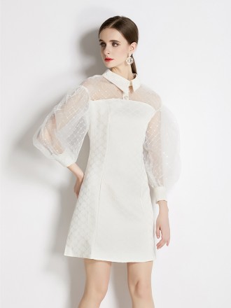 Dress Wholesale New Perspective Sequin Mesh Bubble Sleeve Temperament Midskirt Button Splice Unique ...