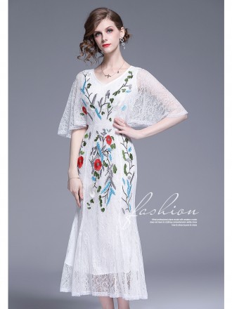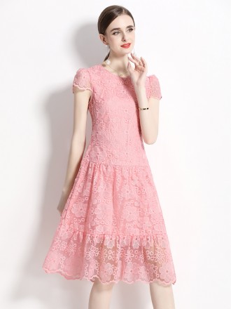Dress Wholesale Summer new style light and elegant dress sexy summer V -neck short -sleeved lace emb...