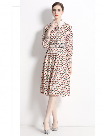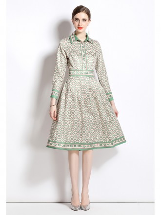Dress Wholesale Long -sleeved shirt collar geometric pattern fashion age reduction temperament is th...