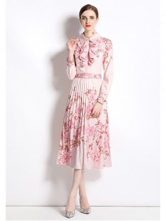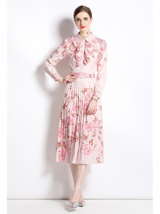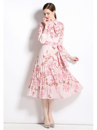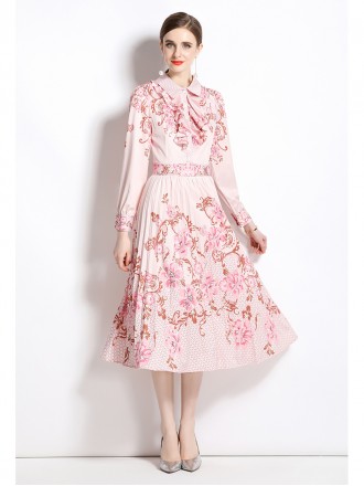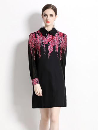 Dress Wholesale European Station New Dress French Hepburn Printed Polo Neck Mid length Simple Bottom...
