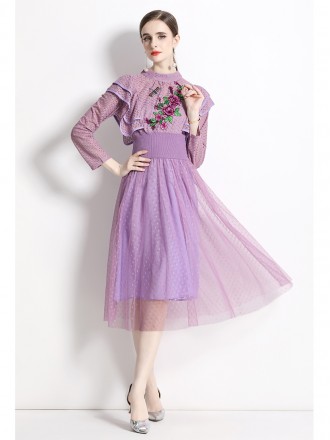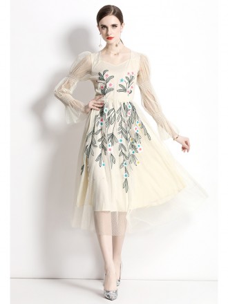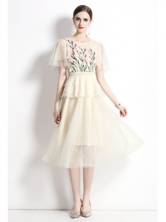 Dress Wholesale Net yarn heavy worker embroidery and elastic shoulder -necked dress to capture elast...
