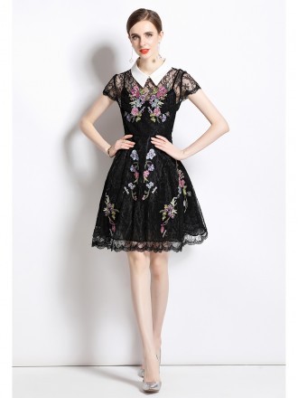 Dress Wholesale Summer new court style high -end embroidery lace skirt doll collar short sleeve wais...