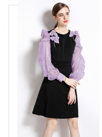 Dress Wholesale The new perspective mesh horn sleeve cubic collar collects the waist and the waist i...