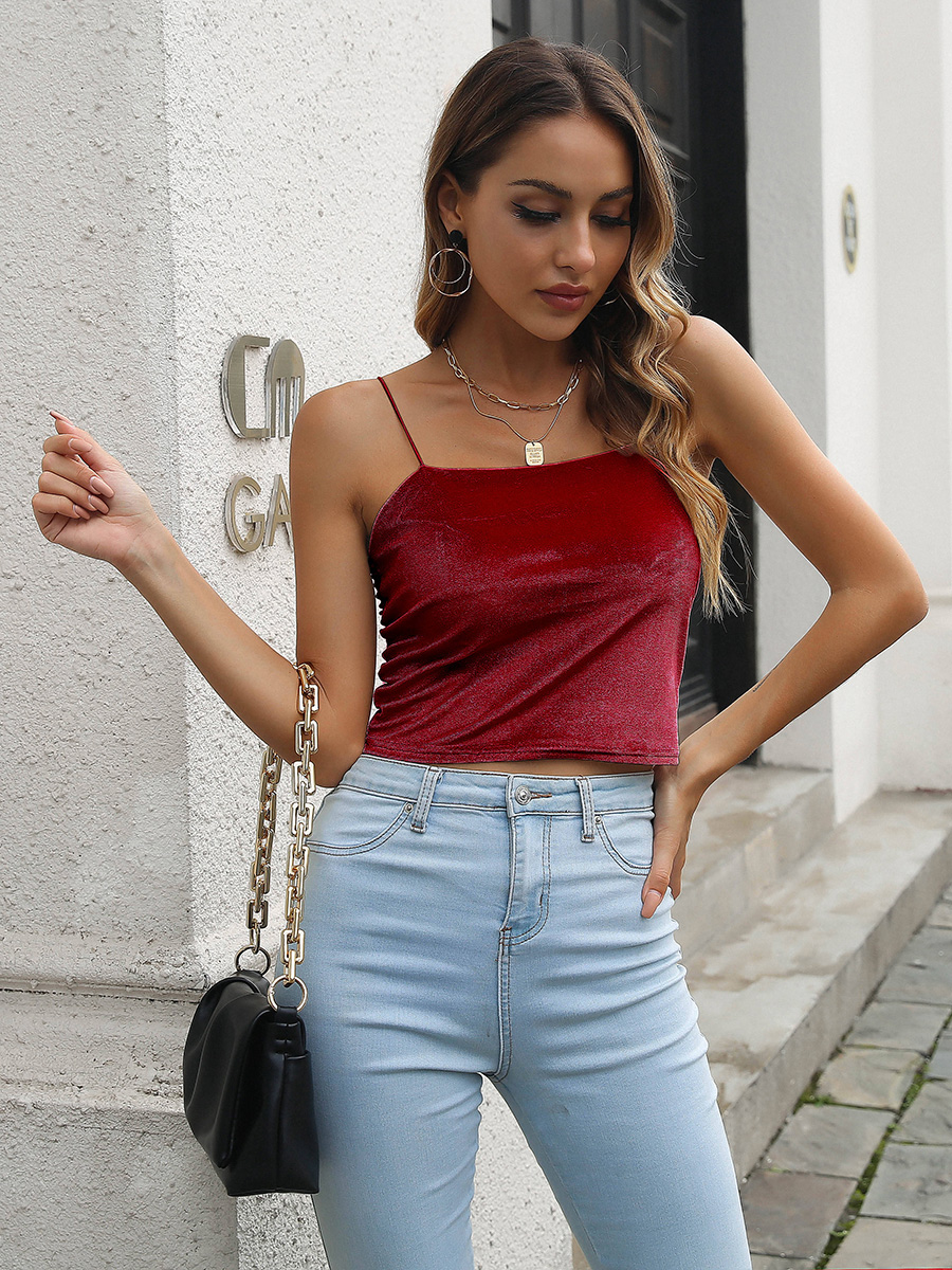 Name:Cami Tank Tops Wholesale Exposed navel short suspender tank top for women wearing suspenders with solid color backing, E