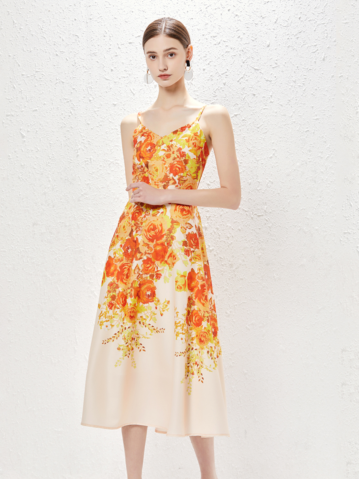 Name:Dress Wholesale Temperament fashion spring and summer new positioning printing imitation linen dress suspenders, vacatio