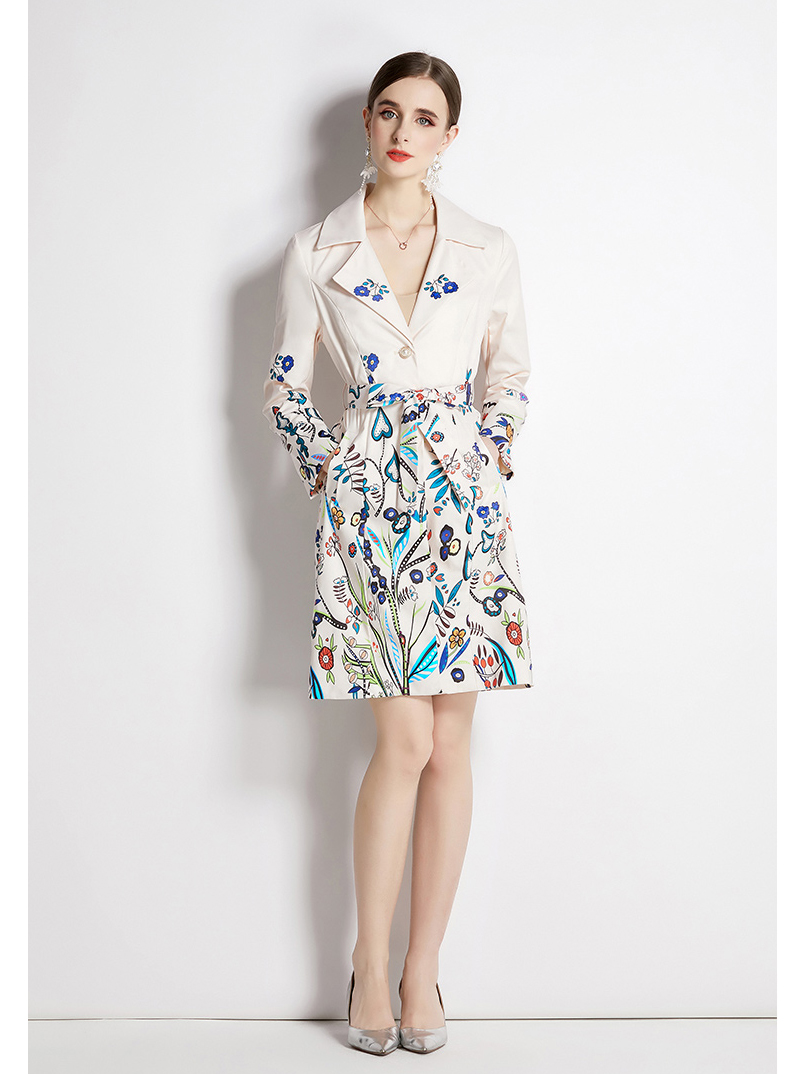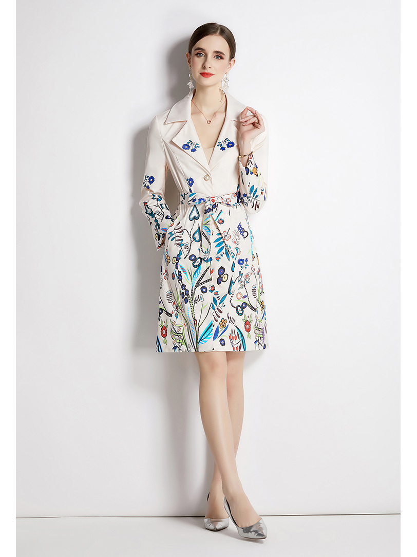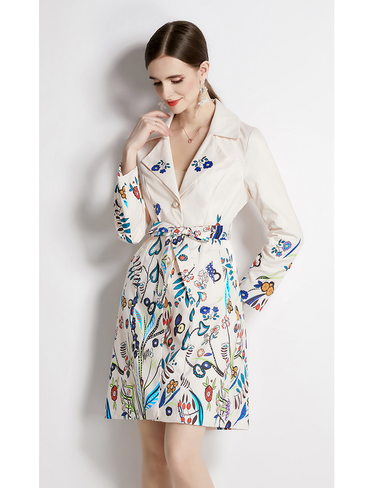 Name:Fashion printed suit collar jacket female spring and autumn temperament waist thinly buckle medium long trench coat new